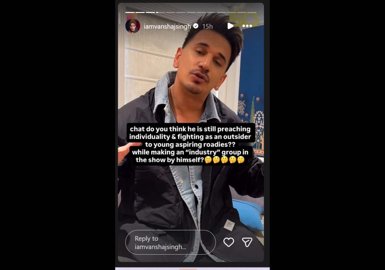 वंशज ने अपनी इंस्टाग्राम स्टोरी में प्रिंस नरूला की फोटो शेयर करते हुए उन पर इंडस्ट्री ग्रुप बनाने का आरोप लगाया. उन्होंने सवाल उठाया कि जो व्यक्ति नए प्रतिभागियों को आउटसाइडर बनकर लड़ने की सीख देता है, वही शो के अंदर गुट बनाकर बैठा है.