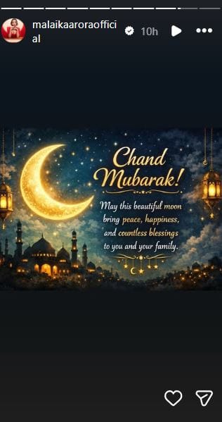 आर माधवन, जो इन दिनों अपनी फिल्म ‘धुरंधर 2’ को लेकर चर्चा में हैं, उन्होंने इंस्टाग्राम स्टोरी के जरिए फैंस को ईद मुबारक कहा.वहीं मलाइका अरोड़ा ने भी एक खूबसूरत तस्वीर शेयर कर सभी की खुशहाली की दुआ की.